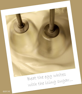 - Beat the egg whites and the icing sugar for about 10 minutes you obtain a thick cream.